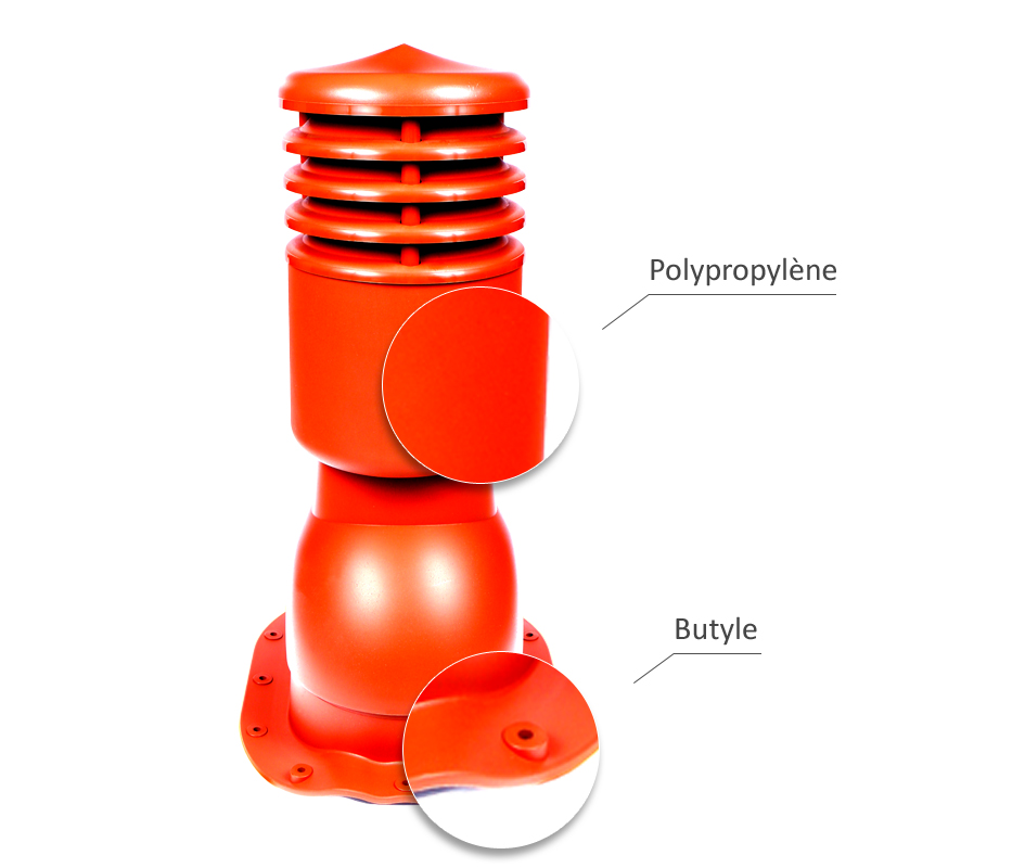 Le kit prêt à installer comprend: un foyer de ventilation ou passage d'antenne, ou évent de toit, passage simple, un jeu de vis paysan dans la couleur de la cheminée.